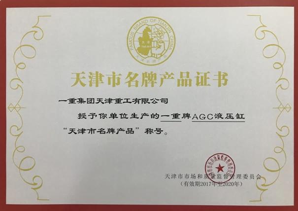 公司生產(chǎn)的AGC液壓缸的配套件,使用在一重AGC液壓缸產(chǎn)品上,獲得“天津市名牌產(chǎn)品”榮譽(yù)證書。